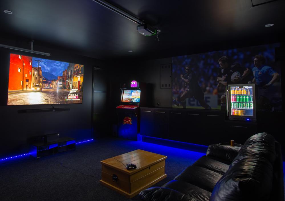 - An outdoor space with dining for 8 people, fireplace, spa, barbeque area, outdoor TV and a trampoline